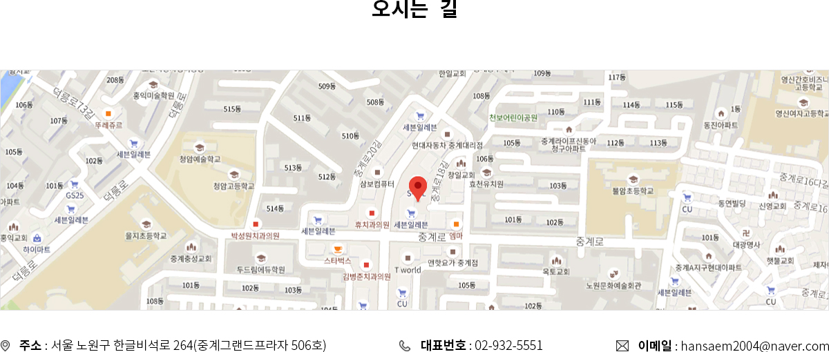 ADDRESS | 서울 노원구 한글비석로 264(중계그랜드프라자 506호)